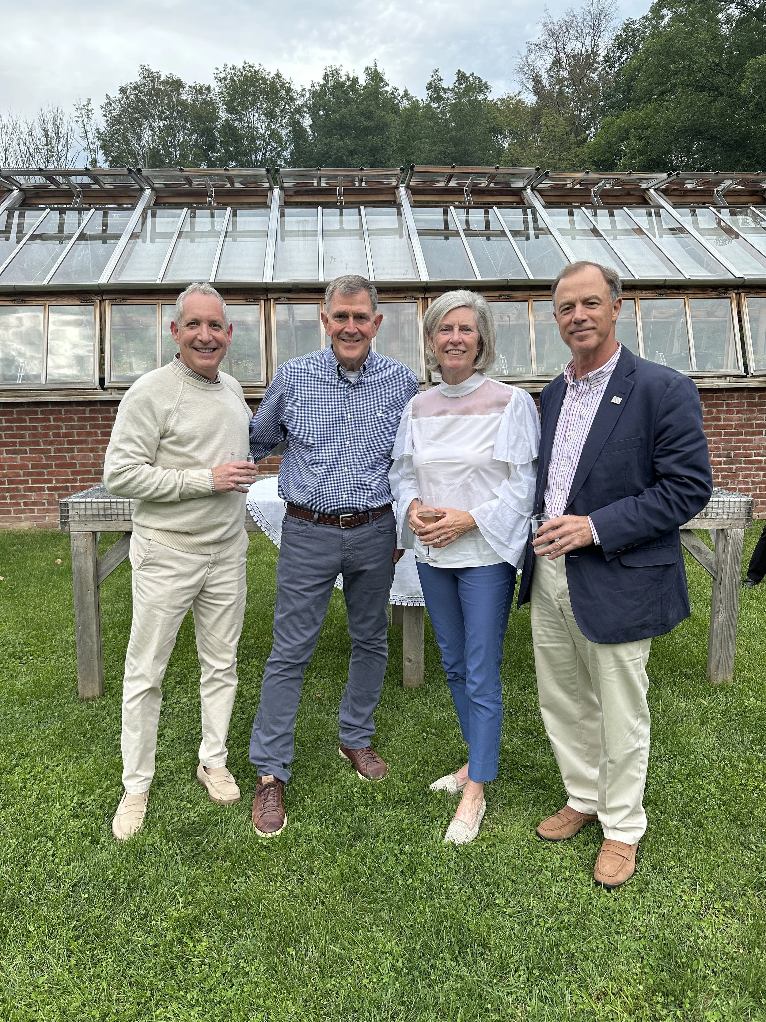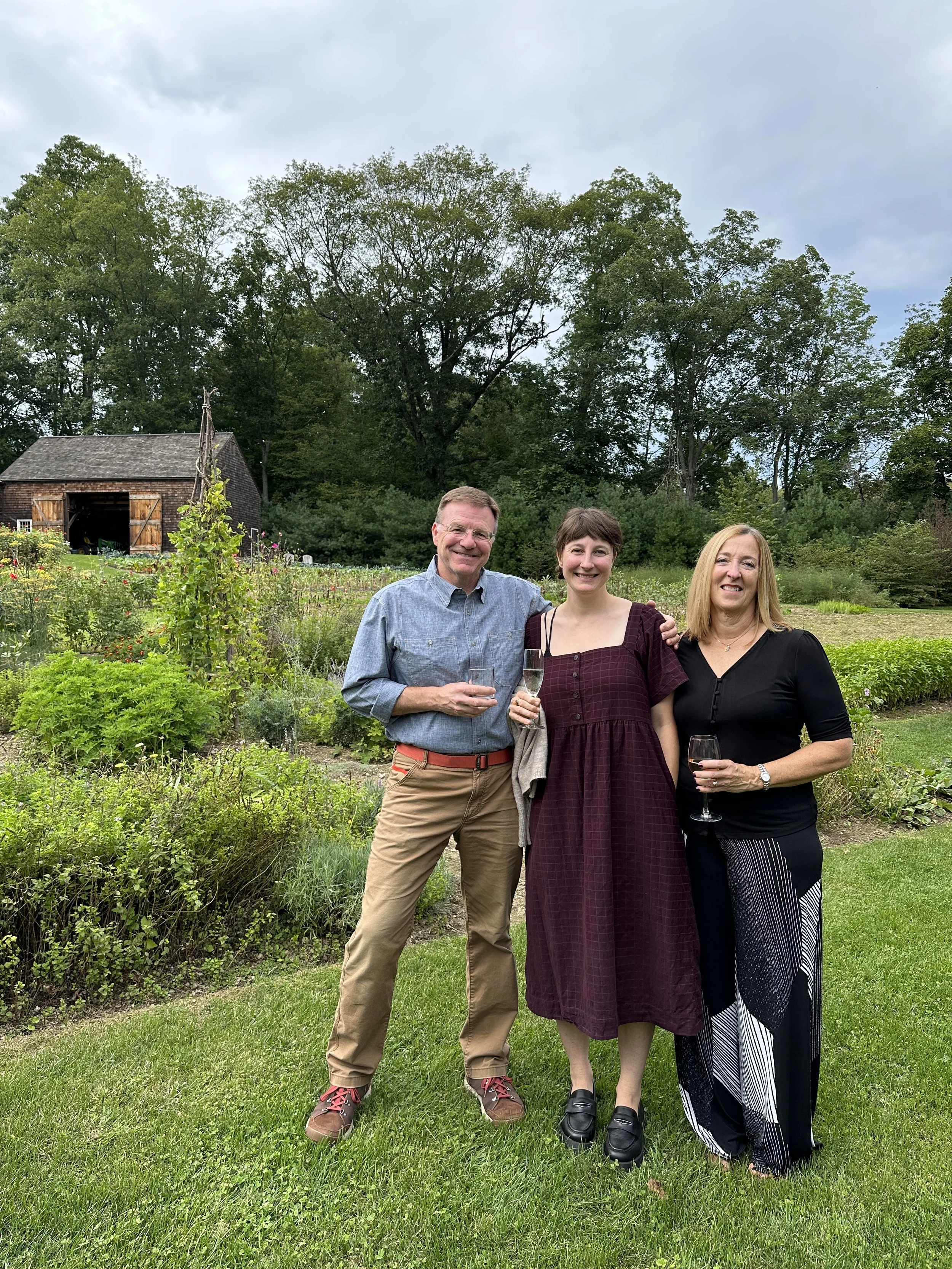 Before each dinner, we meet and greet our guests with a sparkling-wine cocktail in our market garden for a tour led by our Farm Managers. Guests have an opportunity to learn and ask questions about the vegetables, herbs, fruits, and flowers to be enjoyed that afternoon. Immediately following, we gather for dinner in our Cookhouse, originally an 1860s post-and-beam dairy barn from Canada that we restored and re-erected on a stone foundation here on the farm.